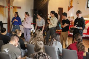 Az Új Jeruzsálem Katolikus Közösségből 7-en jöttek el hozzánk. Lelkesedésük sokakra átragadt, emlékszem, ahogy a vasárnapi „Ki mit visz haza magával” körben többen is az ő lendületüket említették. Egy más fajta evangelizációs utat mutattak, mint amit én a Mentében, vagy akár a környezetemben tapasztalok, megélek. Lelkiségük erősen karizmatikus, dicsőítésüket, imáikat is áthatja a Szentlélek fel-fellángoló tüze. Hozzám kevésbé áll közel ez a lelkiség, nem tudok igazán kapcsolódni hozzá, egyesülni vele. Ettől függetlenül jó volt, hogy elhozták nekünk, elmondták, kik ők, megmutatták, hogy ők hogyan adják tovább az Örömhírt.