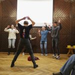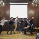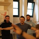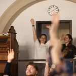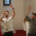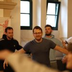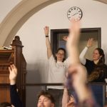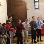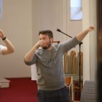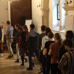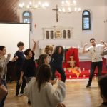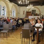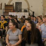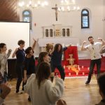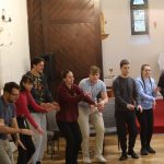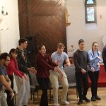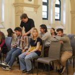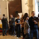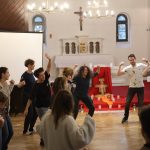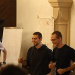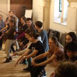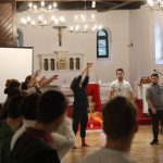A délután a különböző szolgálati területek gyakorlati bemutatásáról szólt: a közösségvezetők, ministránsok és dicsőítők párhuzamos műhelyeken vehettek részt, ahol az adott terület alapvető kérdéseit és legfontosabb feladatait ismerhették meg közelebbről. A nagy közös játék a délutáni fáradtságot is feloldotta: a csoporttagok együttműködésre és kreativitásra építő feladatokon keresztül élhették meg a közösség erejét.