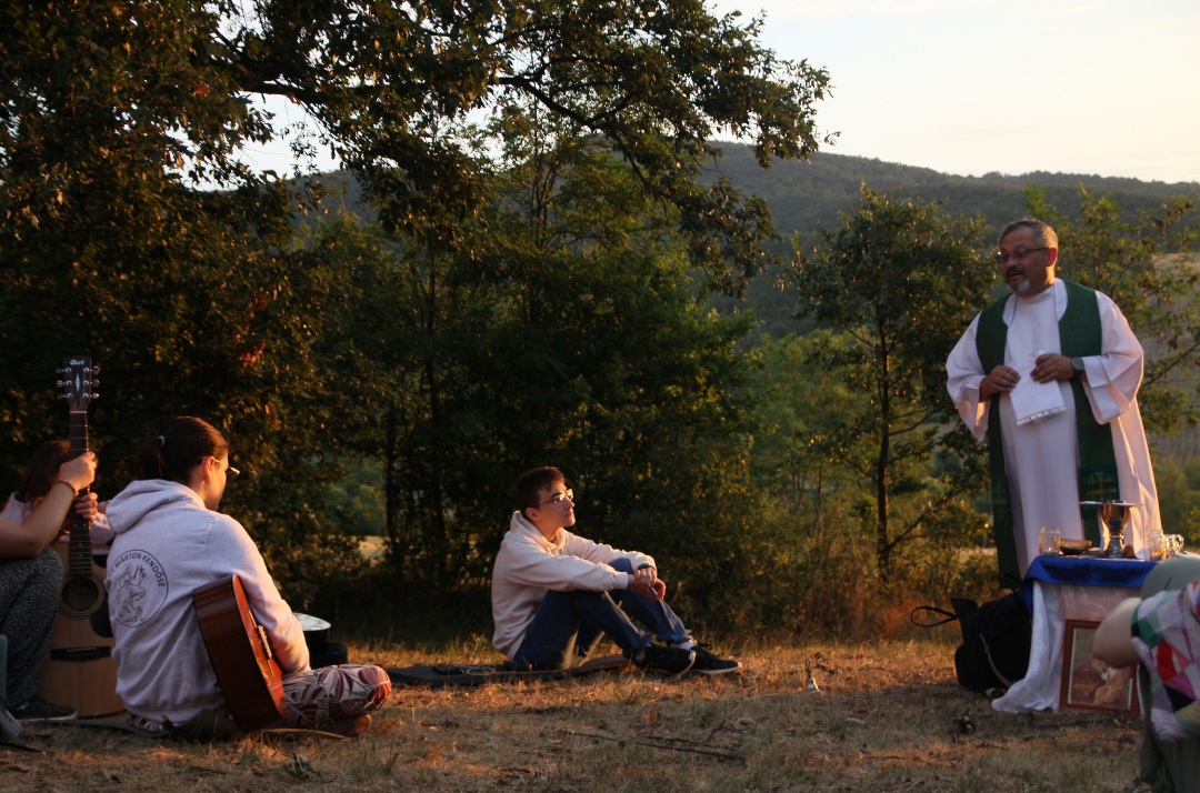 Tudom, tudom anya. Térjek végre a lényegre.. Volt hajnali mise is. Ez különösen mókás volt, mert odaúton kicsit eltévedtünk, de így még kalandosabb volt az egész. Pont kelt fel a nap, mire odaértünk. Elképesztően szép Szentmisét ünnepeltünk!