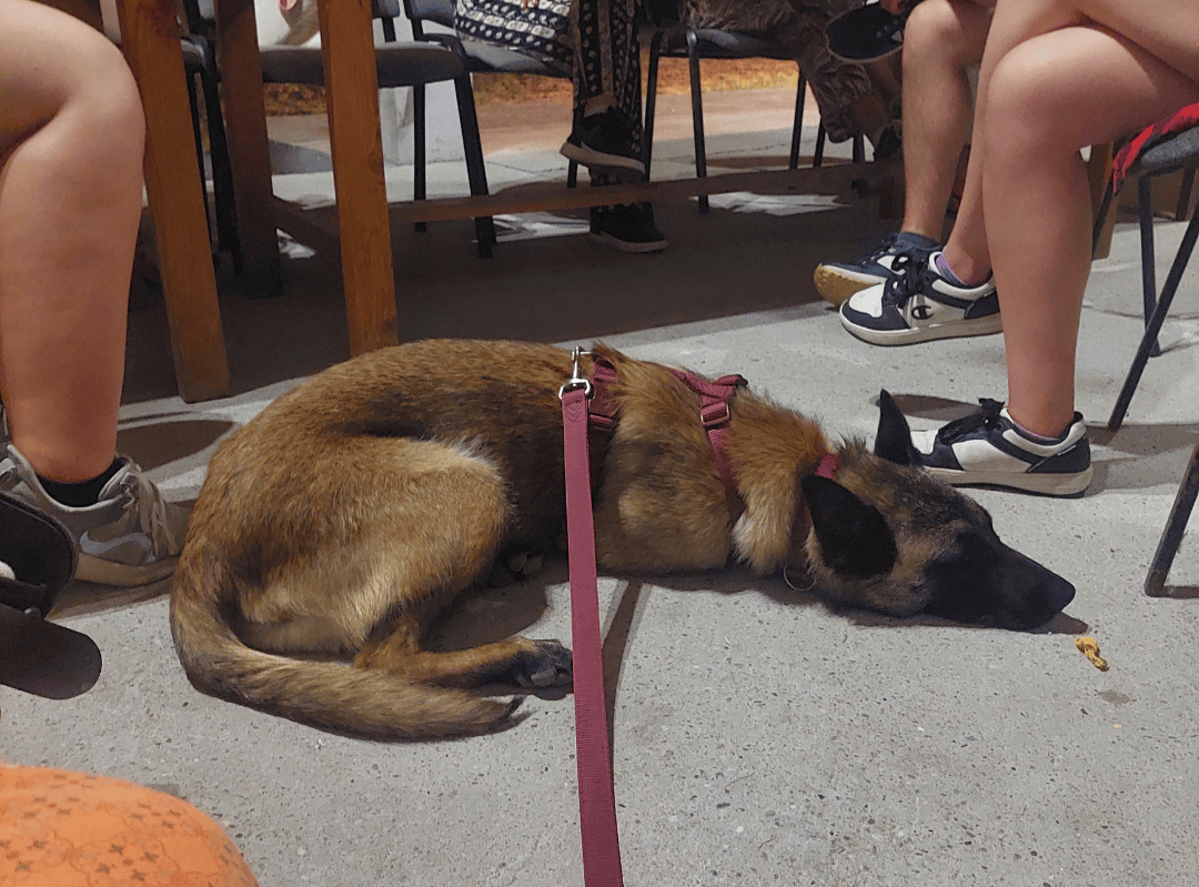 A nagy izgalmak feldolgozásában egy puha kis (nagy) terápiás kutya nyöszörgélése is segített minket.